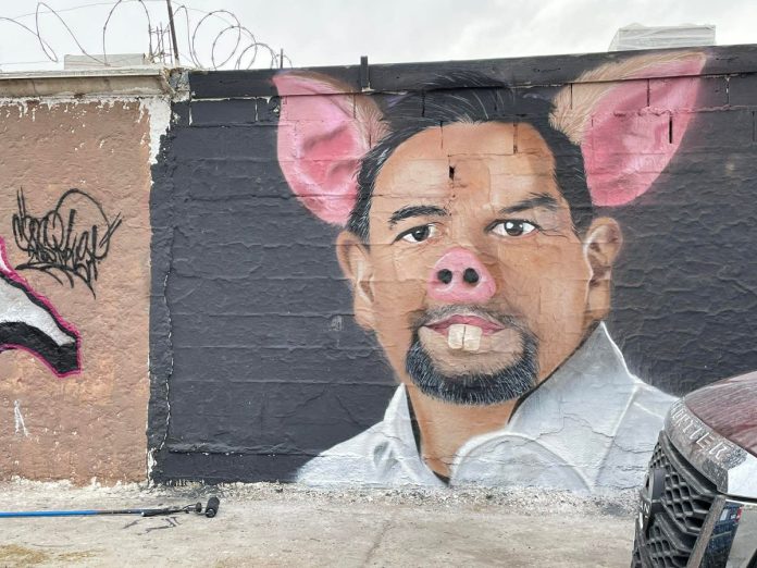 Los hechos ocurrieron durante el fin de semana, cuando elementos de la policía municipal detuvieron a los autores de la obra mientras intervenían un muro en la ciudad. Aunque las autoridades argumentaron faltas administrativas, como la realización de pintas sin autorización, colectivos y organizaciones civiles denunciaron que la acción respondió más a una reacción política frente a una representación crítica del edil.